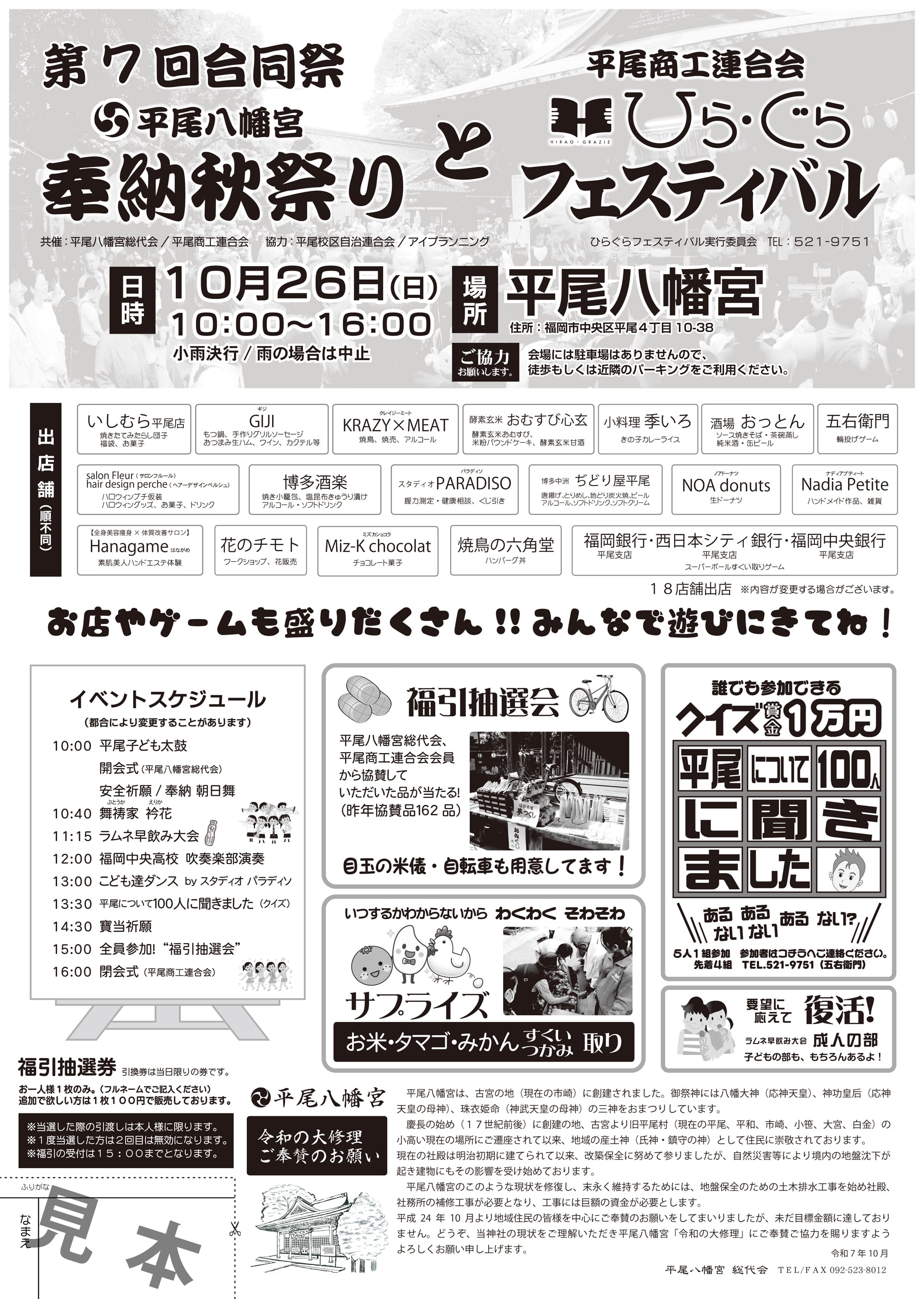 ※第7回「平尾八幡宮 奉納秋祭り」「ひら・ぐらフェスティバル」は終了いたしました。