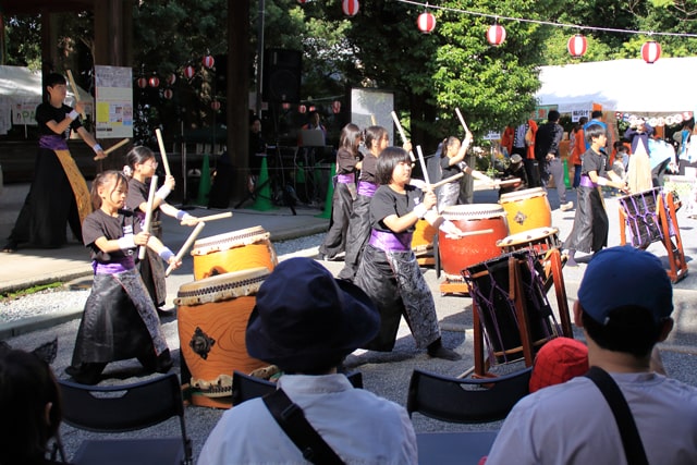 子供たちの勇ましい太鼓の演奏を合図に、奉納秋祭りがスタート!